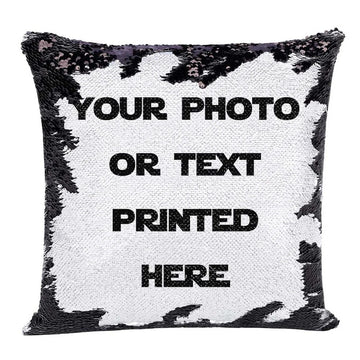 - The front of the Pillow Case is made of durable Sequins. The sequins are reversed by hand to show or hide the personalized photo.