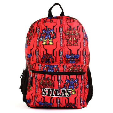 Personalize this Marvel favorite backpack featuring Avengers Mech Strike with a large high quality embroidery customization. This bag has plenty of room to keep items for school, camp, sleepovers, travel, or a day trip. Measuring 16" x 12" x 4.50" this bag is spacious featuring a main compartment and a front pocket, two side bottle pockets, and padded shoulder straps.