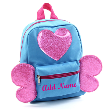 This tiny bag is sure to put a big smile on any kid's face.  Great for kids ages 1 and up, this bag can be personalized with a name of your choice. Fun glitter trims make this bag extra cute for kids as soon as they start walking. Perfect for preschool, day trips, travel, and more!