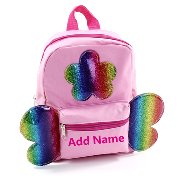This tiny bag is sure to put a big smile on any kid's face. Great for kids ages 1 and up, this bag can be personalized with a name of your choice. Fun glitter trims make this bag extra cute for kids as soon as they start walking. Perfect for preschool, day trips, travel, and more!