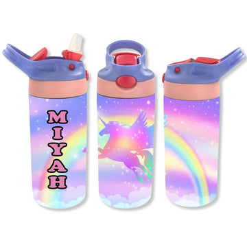 Personalized Kids' 12oz Double Walled Stainless Steel Bottle - Unicorn Rainbow