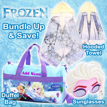 Kishkesh has put together this awesome gift set featuring Disney Frozen. This set includes a Personalized Duffel Bag, Personalized Embroidery Towel, and matching sunglasses by "Sun-Staches". Frozen fans will love receiving this gift set for any occasion! Bundle up and save today!